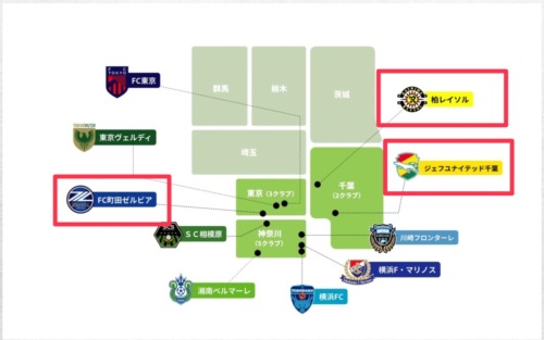 やはり中山競馬場と東京競馬場を活動拠点としている鳩胸男ですから、写真の通り赤い四角で囲った柏レイソルとジェフユナイテッド千葉とFC町田ゼルビア。