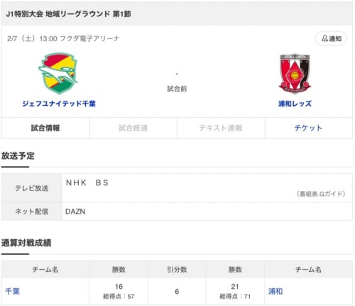 こちらは今週土曜日13時にキックオフとなるジェフ千葉と浦和レッズの一戦。